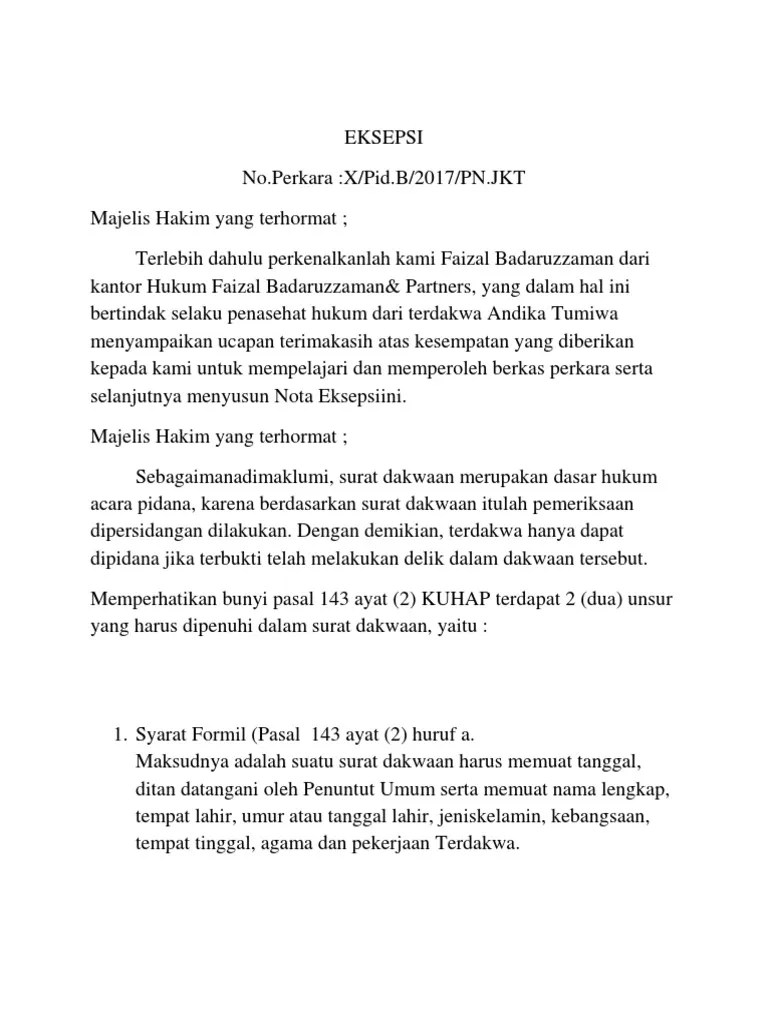 Surat Dakwaan Tidak Memenuhi Syarat Formil - Contoh Surat Eksepsi Pidana Korupsi - MARINAPALMERMOLINA : " jika dikehendaki, para pihak dapat didampingi atau menunjuk seorang kuasa sebagai wakilnya, untuk ini harus diberikan kuasa khusus untuk itu, kecuali jika si pemberi kuasa hadir.. Untuk itu, maka penyusunan surat dakwaan harus dilakukan secara teliti dan cermat. Dalam kuhap tidak pernah diatur berkenaan dengan bentuk dan susunan dari surat dakwaan. Adapun bunyi pasal 123 ayat (1) hir: Kedua syarat ini tidak bisa Gugatan yang ditandatangani kuasa berdasarkan surat kuasa yang tidak memenuhi syarat yang digariskan pasal 123 ayat (1) hir.